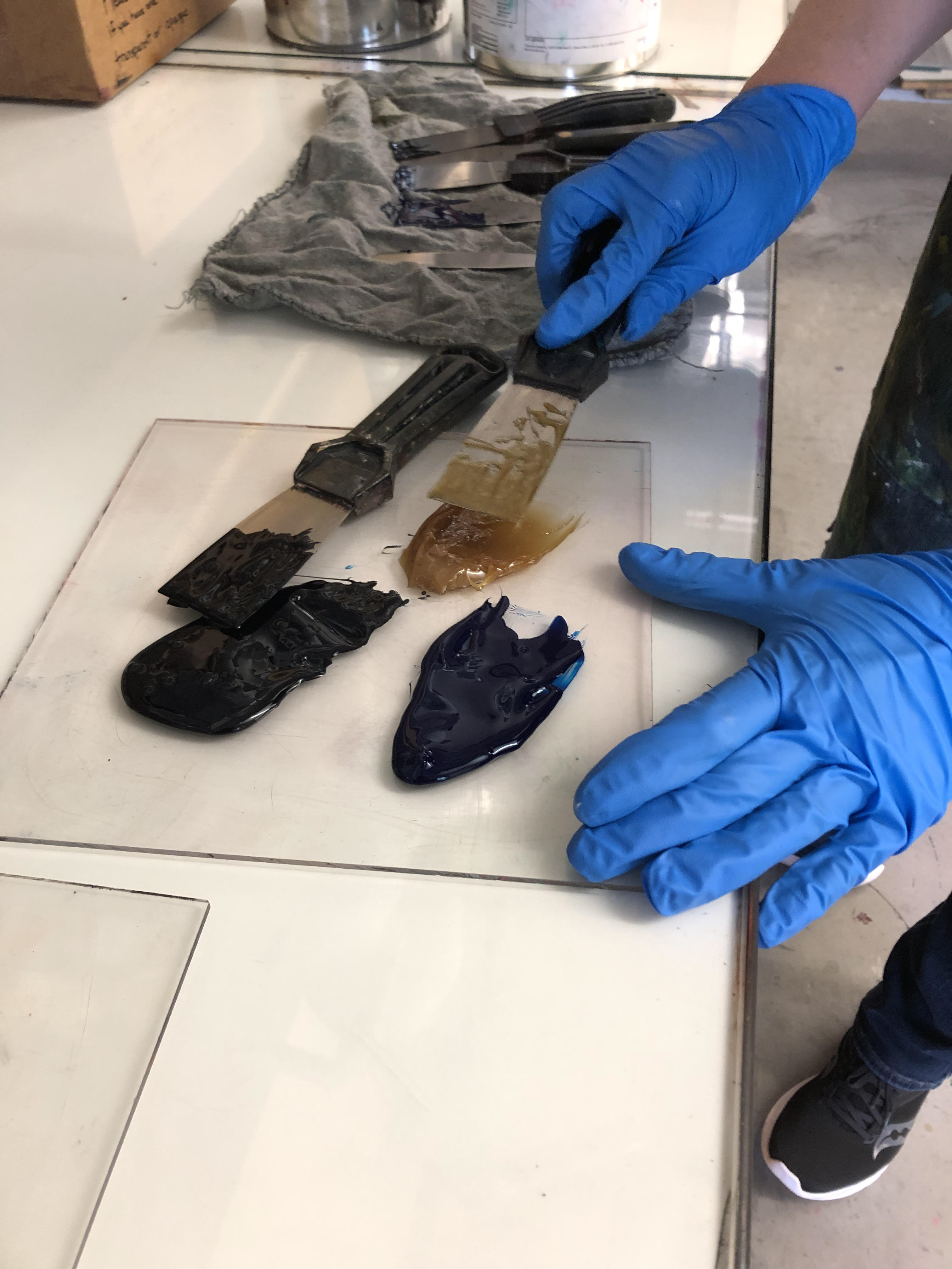 Getting close to printing! Mixing my ink, Pantone color 5473.
